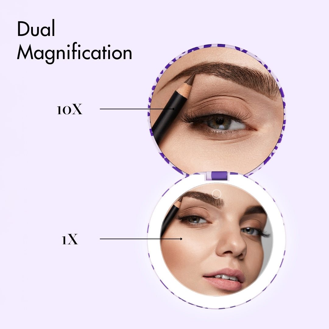 - Double-sided magnification (1x and 10x) so you can apply a full face of makeup, do a quick touch-up on the go, or focus on a detailed task like tweezing or inserting contact lenses.