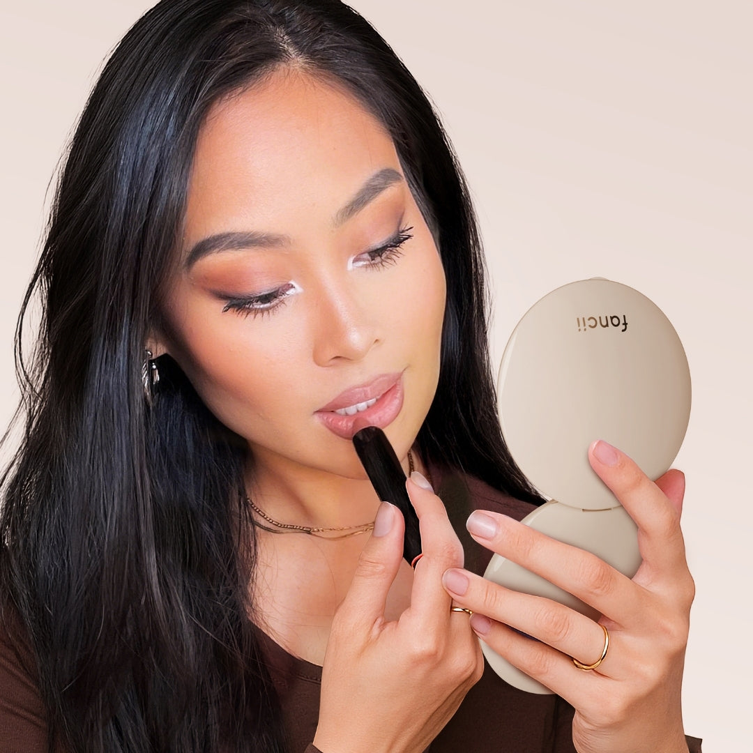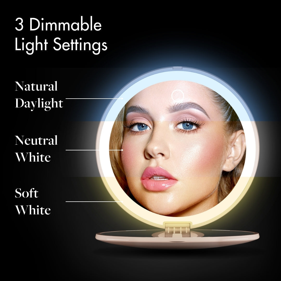 With a built-in true daylight ring light that delivers 2x the brightness of other compacts, the Mini Taylor provides perfect lighting for on-the-go touch ups, anytime, anywhere.