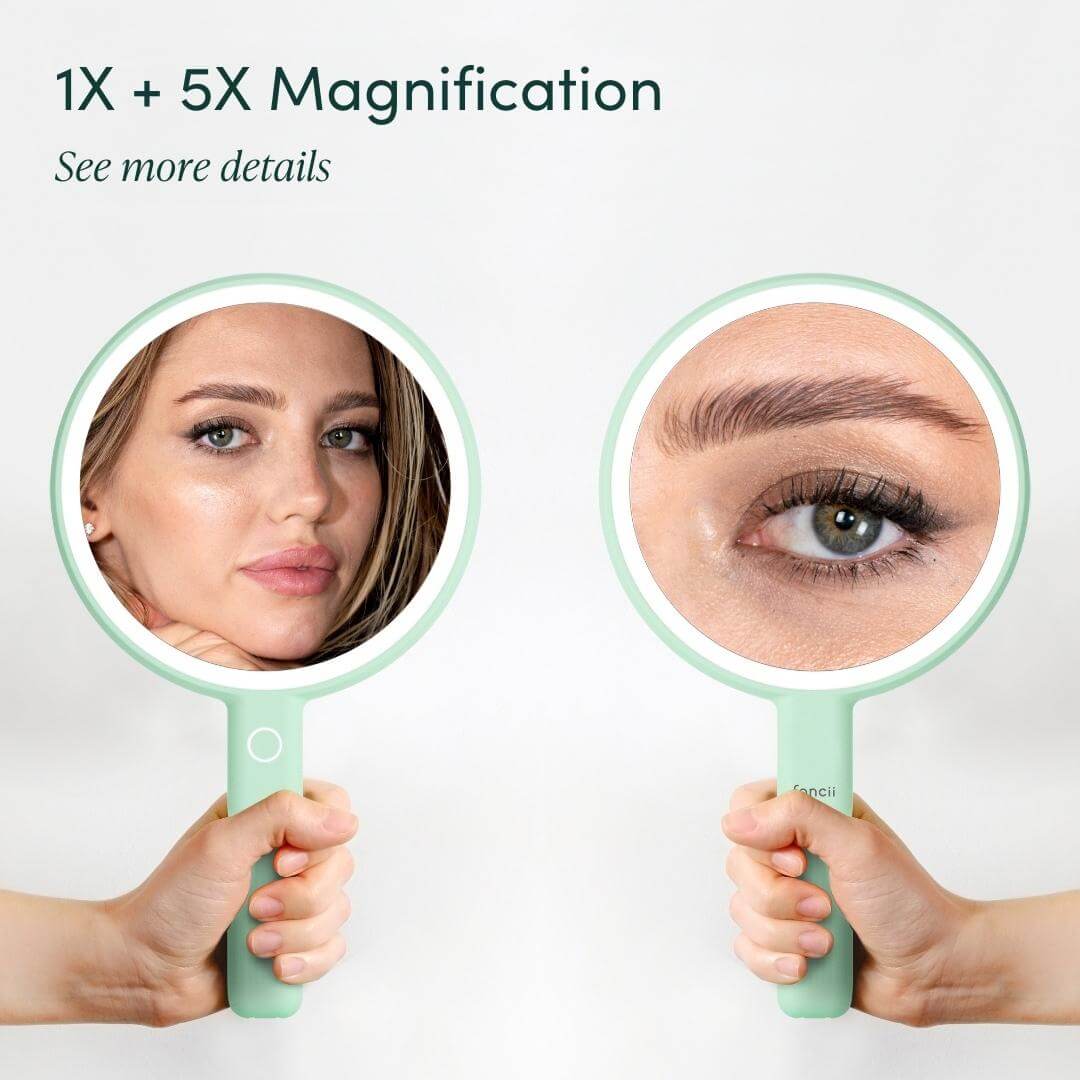 Wave hello to Cami, your new lighted handheld and vanity mirror that truly does it all. Designed with 52 LED lights that shine bright on the double-sided 1X (normal view) and 5X magnifying mirrors, this adventurous queen can’t wait to explore the world with you.